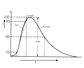 Dynamische AnsprechspannungDer Spannungswert, bei dem der Ableiter bei schnell ansteigender Spannung anspricht. Zugrunde gelegt wird ein Anstieg von 1kV/Sekunde. Hieraus läßt sich das dynamische Verhalten ablesen, je schneller der Ableiter anspricht, desto kleiner ist die dynamische Ansprechspannung. Angegeben sind jeweils für den Ableitertyp gemessene, typische Werte. Sie müssen von mindestens 95% der Ableiter erreicht werden..